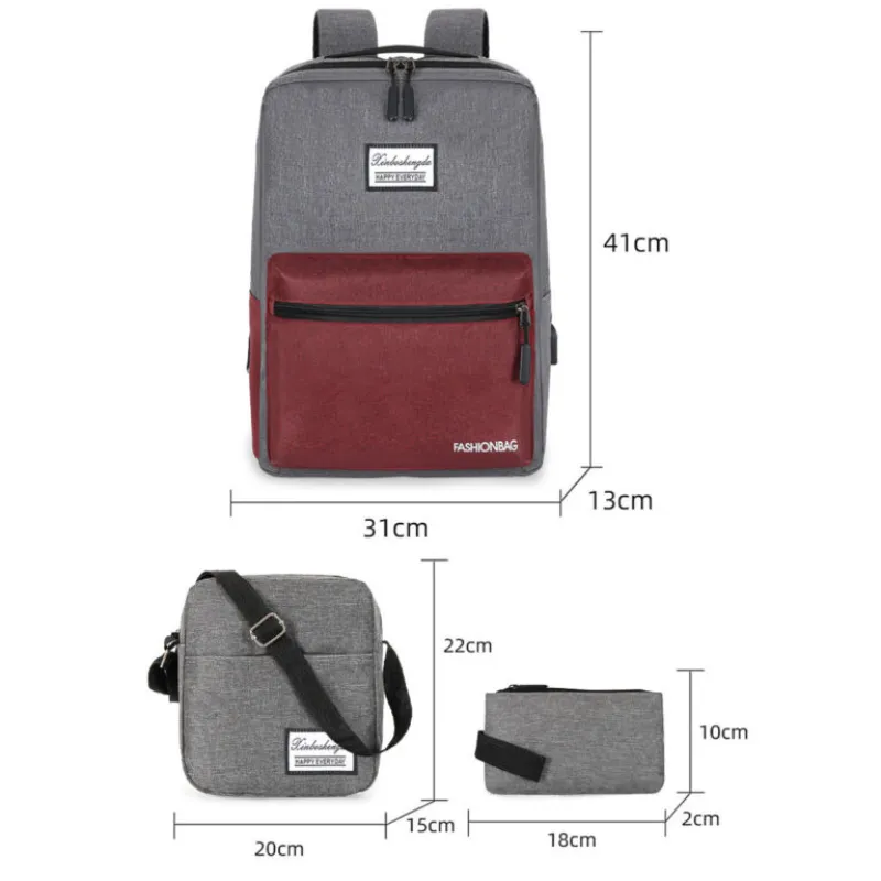 - يتكون منتجنا من حقيبة و محفظة و مقلمة مما يجعله مثاليا للدراسة و السفر و العمل