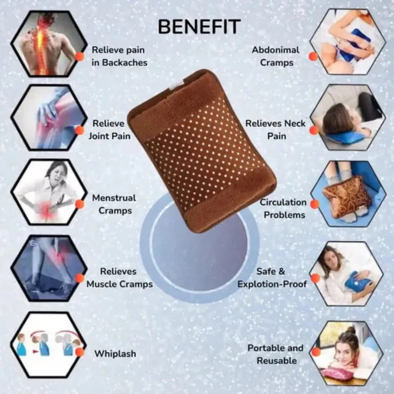 سواء كنتِ بحاجة إلى تخفيف آلام الدورة الشهرية والتشنجات أو كنتَ تبحث عن راحة بعد يوم طويل أو تمرين شاق، فإن كيس الماء الساخن الكهربائي القابل لإعادة الشحن هو اختيارك الأمثل!